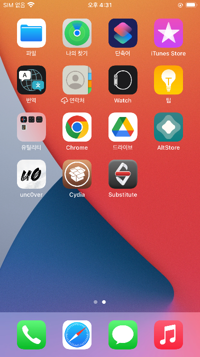 설치가 정상적으로 진행되면 unc0ver 앱아이콘을 확인 하실 수가 있습니다.